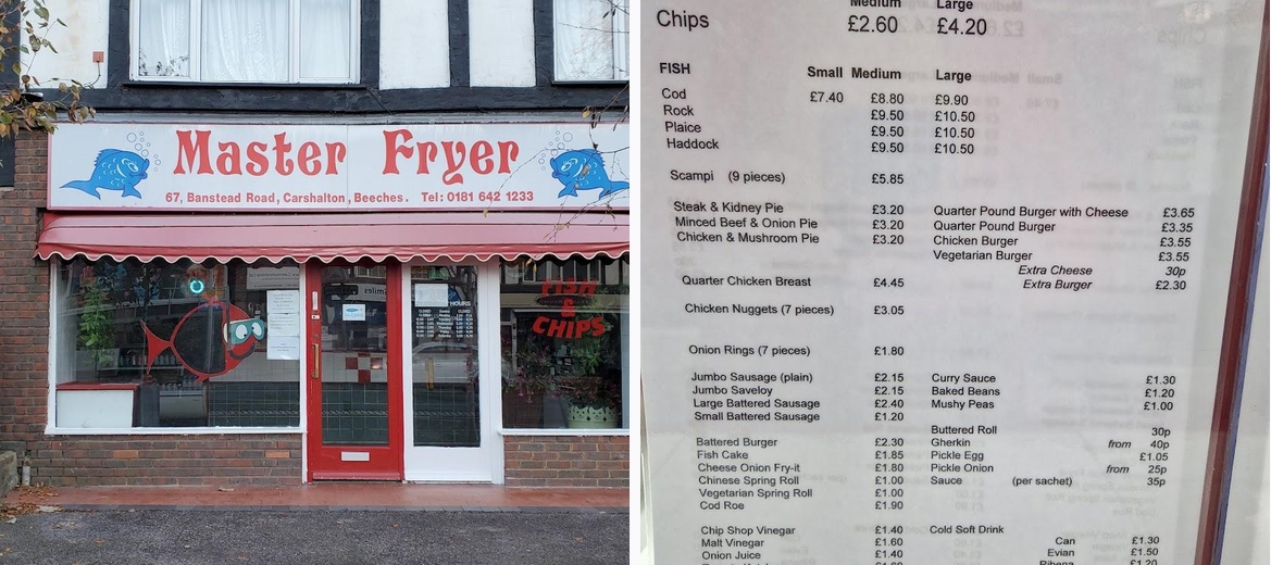 Discover Master Fryer, your go-to fish and chips takeaway in Carshalton! Indulge in our famous fish cakes and crispy battered sausages at unbeatable prices. Conveniently located at 67 Banstead Rd, we offer a cash-friendly service that keeps customers coming back. Call us today at +44 20 8642 1233!